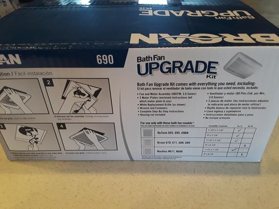 Nutone bath fan upgrade kit model 690nt. Kit includes quiet fan motor grille wrench and two motor plates. Upgrade kits nutone 60 cfm quick install bathroom exhaust fan motor and grille upgrade kit single pack. 670 671 688 689 housing dimensions 7 1 2 x 7 1 4 only. No new duct work.